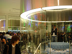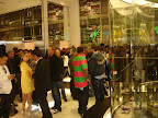 Had the pleasure of attending the opening of the newest BAPE store in LA last night. In attendance: Kanye, Pharrell, Chad Hugo, Shay (from NERD), Rick Ross, Jermaine Dupri, Pete Wentz, Nicole Richie, Serena Williams, Takashi Murakami and Nigo. The store has about 20′ ceiling with a circular glass room in the middle with a conveyor belt of shoes going around it. Shirts on hangers line the left two walls, while the right wall is a 20′ high glass case with product folded inside it along with the largest pair of BAPE jeans I’ve seen (about 4′ high). The back wall is the cashier with a display case featuring clocks, CD cases and other BAPE accessories. They also had BAPE toilet paper!